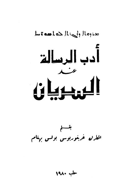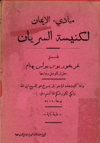 ܒܝܬ ܟܬܒܐ ܕܡܪܝ ܓܪܝܓܪܝܘܣ ܦܘܠܘܣ ܒܗܢܡ مكتبة المثلث الرحمات الملفان مار غريغوريوس بولس بهنام للأسف الشديد ترك الفقيد ثروة من البحوث والمقالات وهي كثيرة ولا تحصى ونتمنى أن نحصل عليها جميعها لذلك من لديه كتاب لملفاننا العظيم يزود مكتبته به وله الأجر مع خالص محبتنا |